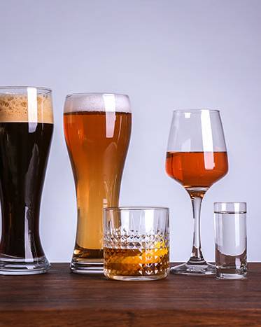 Table,With,Glasses,Of,Wine,And,Spirits,On,Color,Background